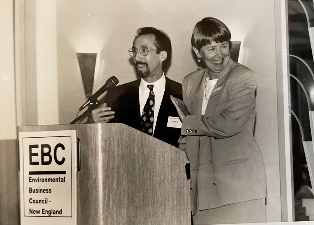Former Normandeau CEO Pam Hall was one of the driving forces behind Normandeau’s transition to an ESOP. Pictured here (just before the transition from privately owned to employee owned) is Pam with long-time friend, associate, and former President of the Environmental Business Council of New England, Dan Moon.